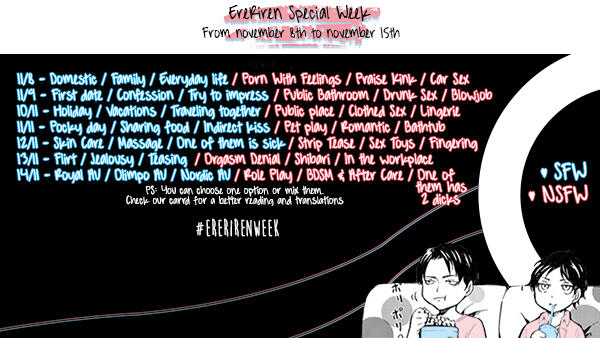 L'agenda EreRiren è una raccolta di tutti gli eventi EreRiren, come EreRiren Weeks, Ererictober e altri, alcuni potrebbero essere mondiali e altri potrebbero essere regionali/nazionali.